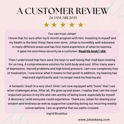 Sometimes a transformation begins with chaos and pain, but Johan gave me building blocks to heal my body and soul, as well as strength and energy to understand that I can change myself. He has taught me to live a new richer life. I understand loving myself.